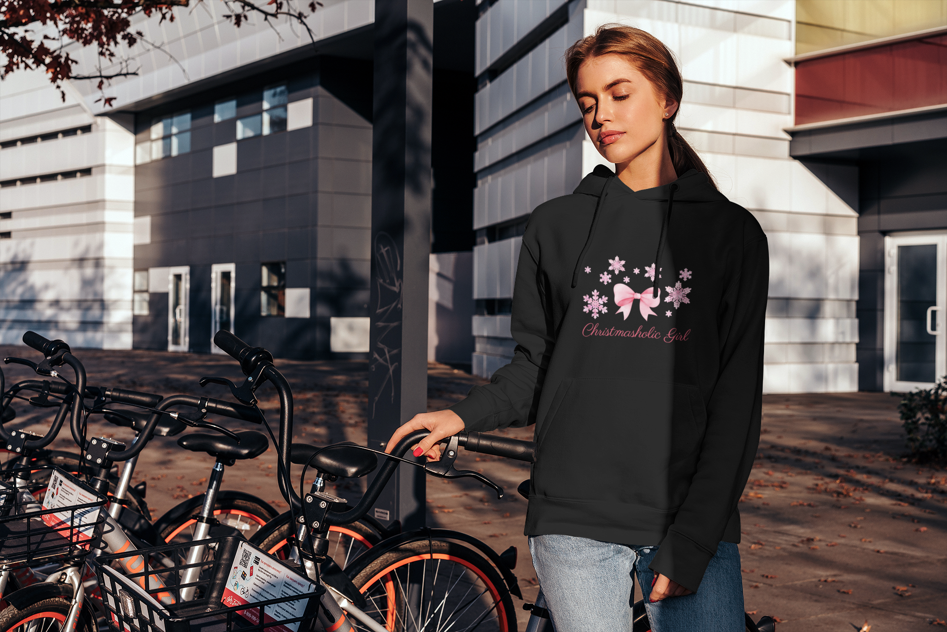Girly Snowflake Bow Hoodie – Holiday Soft Style