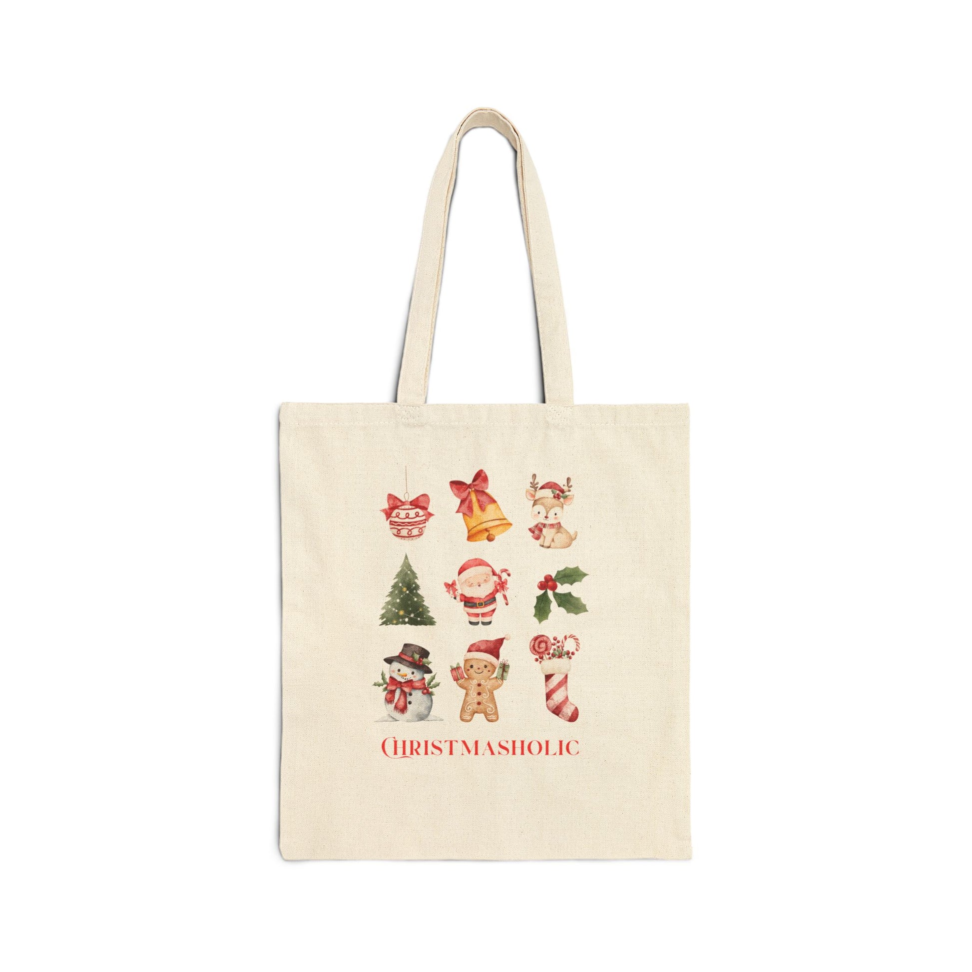 A cozy touch of Christmas you can carry anywhere. This canvas tote features vintage-style holiday icons in warm festive colors: Santa, gingerbread, bells, reindeer, candy canes, and more. Made from sturdy 100% cotton canvas, it’s durable, lightweight, and perfect for everyday errands, gifting, or holiday shopping.